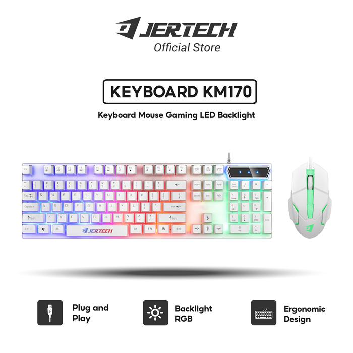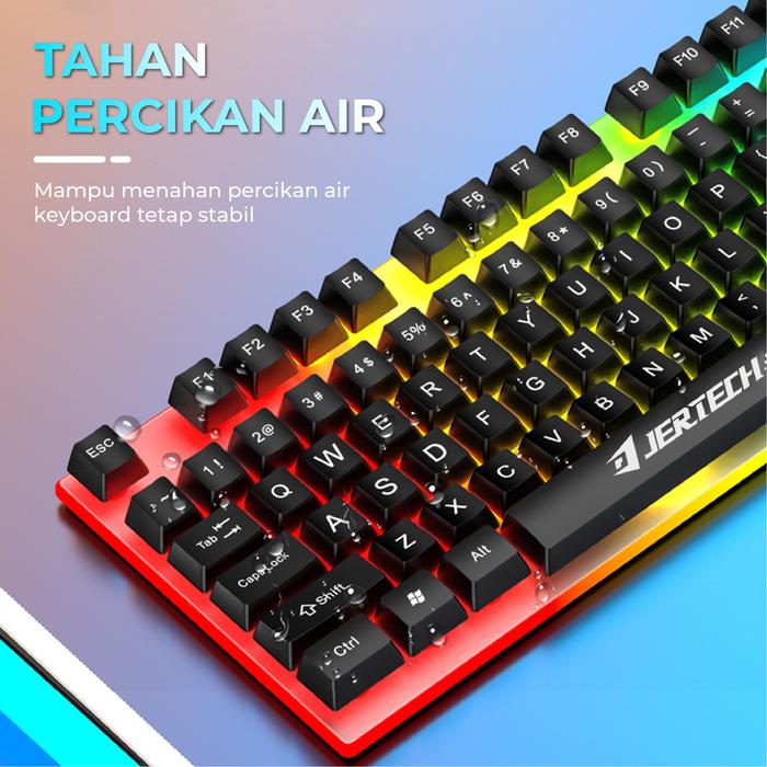 JERTECH Keyboard Mouse Gaming Kabel KM170 Full LED Backlight 104 Keys Computer - Hitam