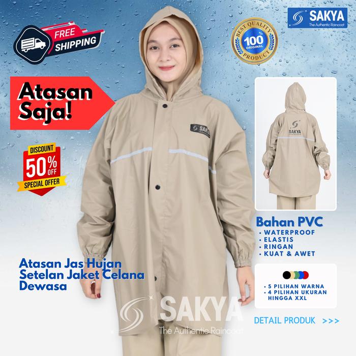 (ATASAN SAJA!) Jaket Jas Hujan Reflektor Lengan Panjang by SAKYA Unisex Anti Rembes Bahan PVC Terbaru! - Krem M