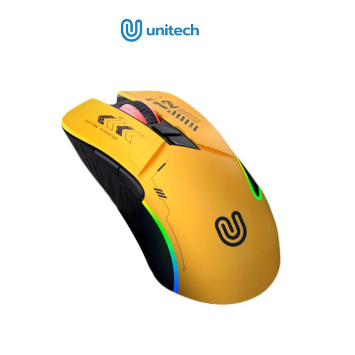 Mouse Gaming Wireless Bluetooth Rechargeable Unitech M12 Dual Connection Silent Click 1600 DPI RGB - Kuning