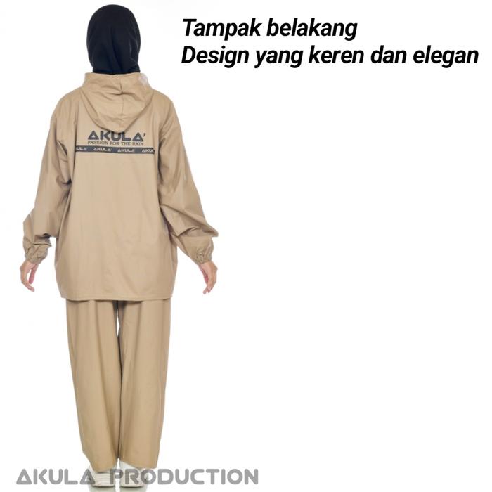 AKULA Jas Hujan Setelan Pria Wanita Tebal Elastis Bahan Pvc Anti Rembes - Mocca L