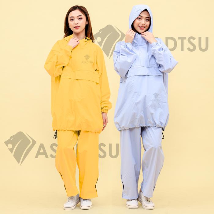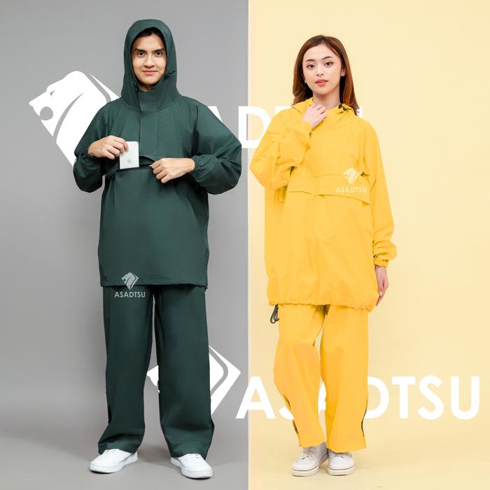 Asadtsu Jas Hujan Saku Kangguru Bahan Tebal Setelan Dewasa Hijau Zipper Merah - Navy All-Size XL (Max 80Kg)