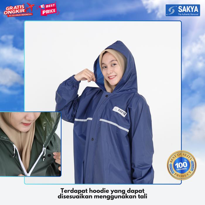 SAKYA Jas Hujan Setelan Dewasa Pria Wanita PVC Tebal Ringan Elastis Waterproof Scotlight Modern Minimalis - Krem M