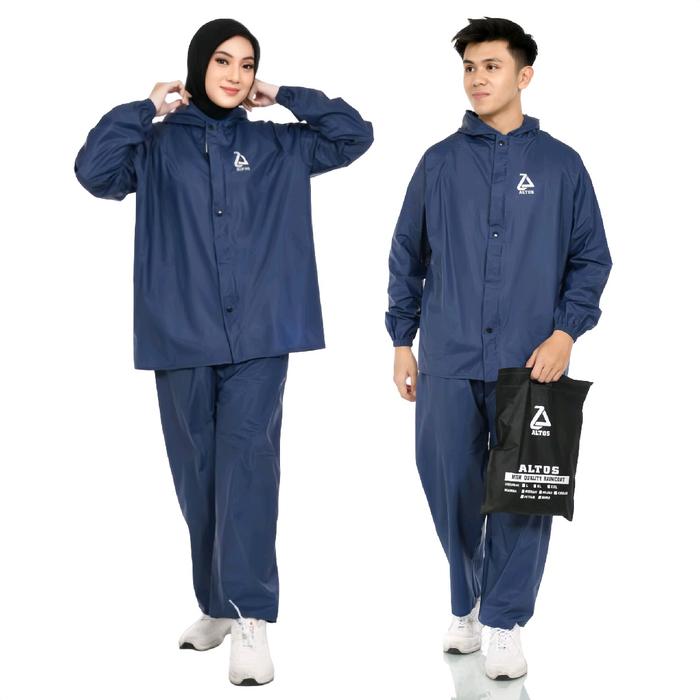 Jas Hujan Raincoat Pria Wanita Terbaik ALTOS Original Anti Rembes Hitam - BIRU L