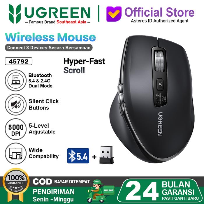 UGREEN Mouse Wireless Bluetooth 5.4 Hyper Speed Ergonomic Multi-mode 45792