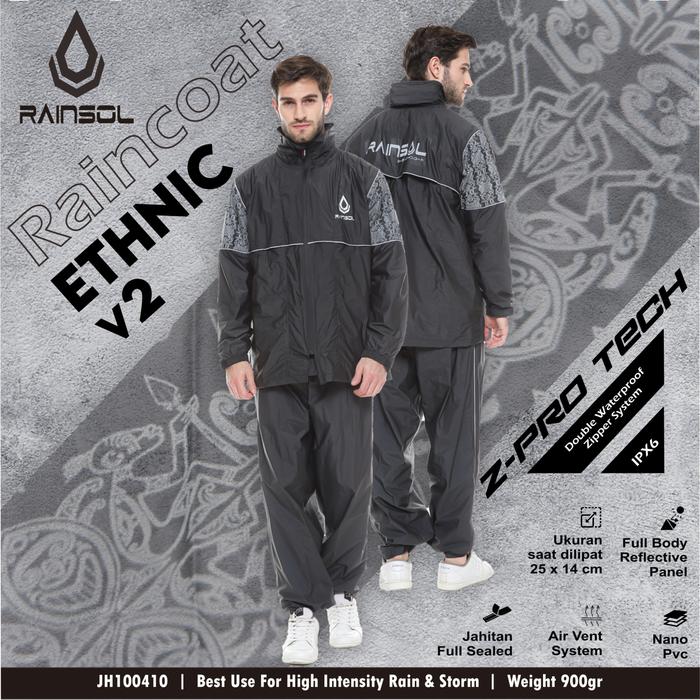 Rainsol Ethnic v2 | Jas Hujan Pengendara Motor | Double Zipper | 100% Waterproof - v2 L