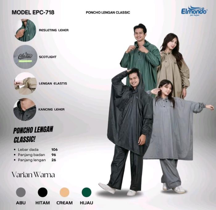 JAS HUJAN SETELAN PONCHO CELANA SUPER JUMBO DENGAN BAHAN PVC DARI ELMONDO - COKLAT/CREAM