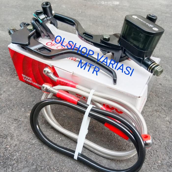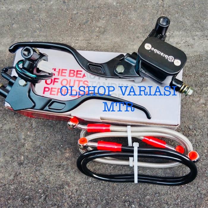 Sepasang master rem kotak set selang rem 95cm universal Motorcycle Cakram Tabung - BREMBO KOTAK+ SELANG SILEVER