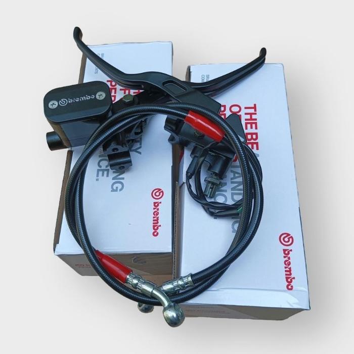 promo paket master rem kotak 1set kiri kanan plus kabel selang rem 95 cm universal - KOTAK+HITAM