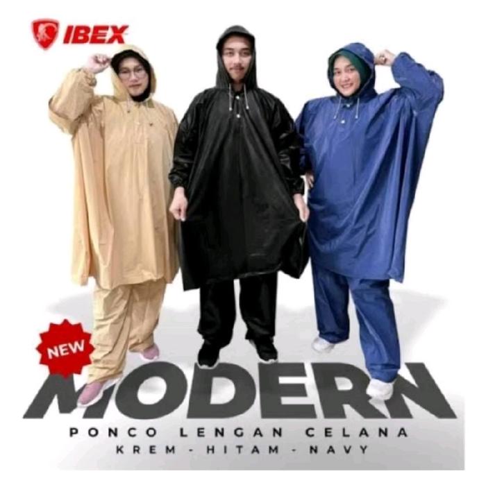 MODERN Jas Hujan Brand IBEX Ponco Lengan Celana Harga untuk 1 Set / 1 Stel - Hitam