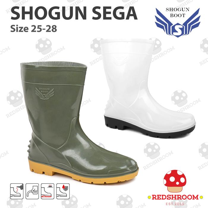 Sepatu Boot Pendek SHOGUN SEGA Hijau Putih Boots Karet Anti Air Slip Lokal Ringan Perkebunan - Hijau 25