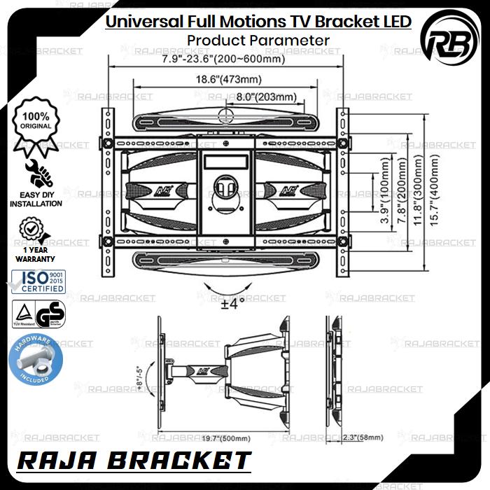 Braket Breket Bracket Tv 55 60 65 70 75 80 85 Inch, Universal Full Motions Bracket Tv Lcd Led Swivel