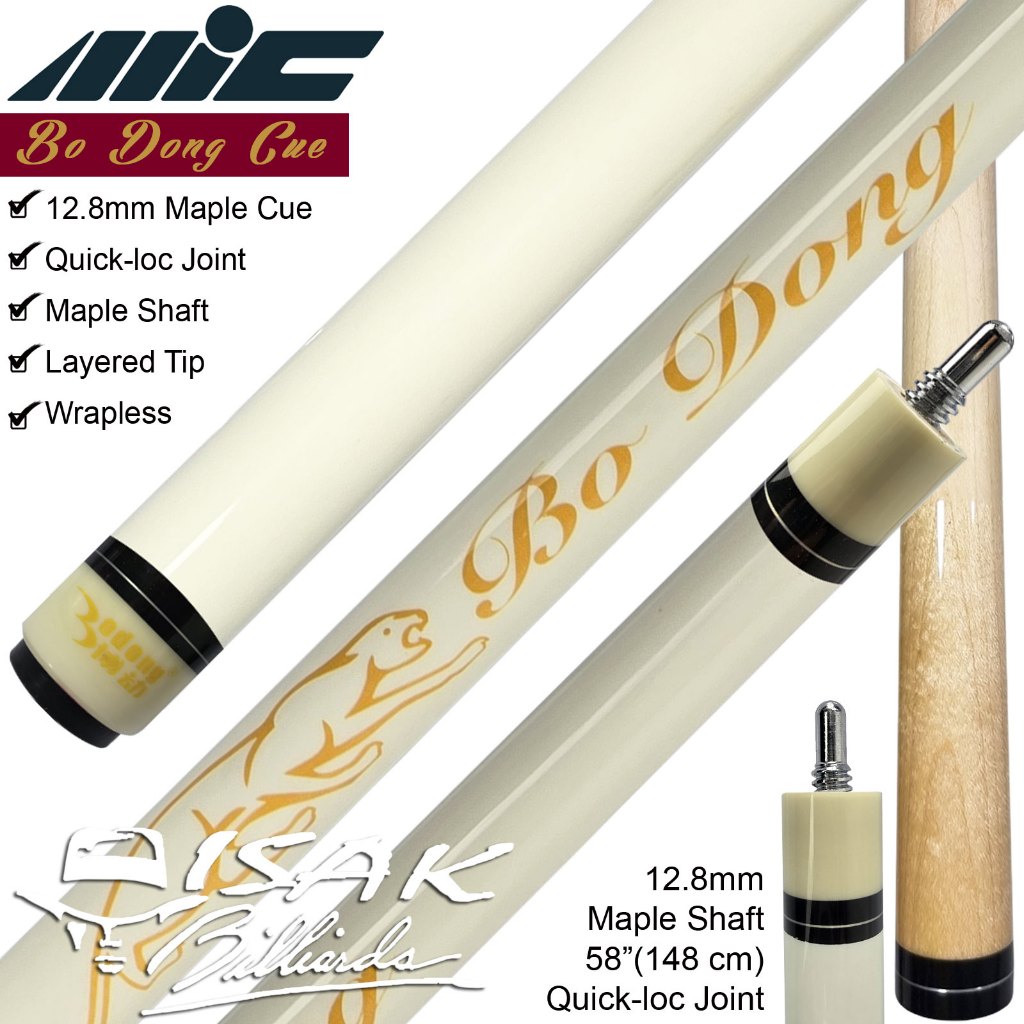 BD-W Maple Pool Cue - White Stick Billiard Layer Tip Kayu Mapel Putih