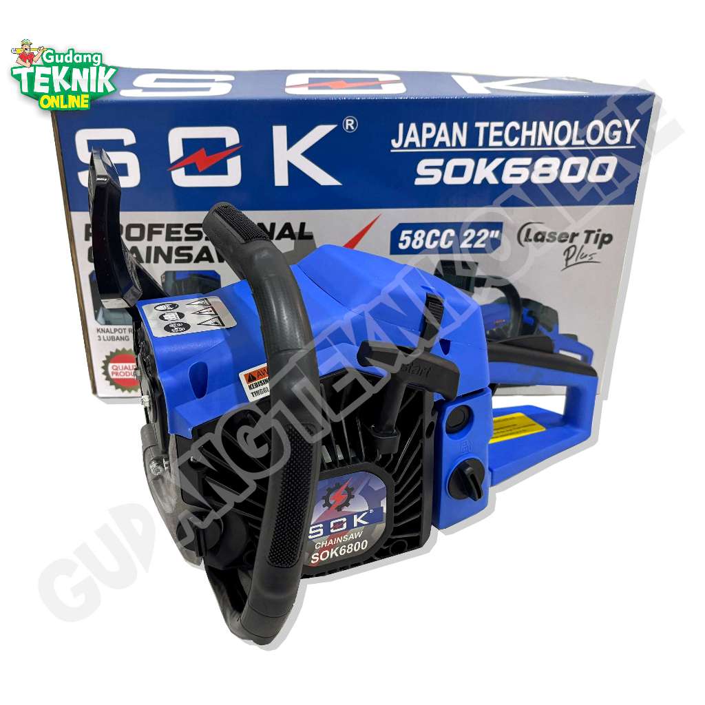 Chainsaw 22" Bar Laser SOK 6800 SOK6800 2Tak Senso / Mesin Gergaji Kayu Chain Saw Bar Laser 22 Inch Mesin Potong Belah K