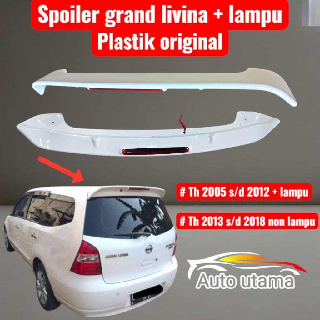 spoiler grand livina 2005 s/d 2018 plastik original + lampu / spoiler livina