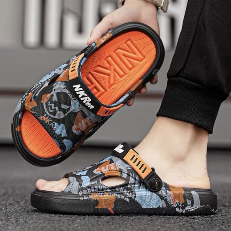 Sandal Pria Terbaru 2025 Dengan Gaya Korea Sol Karet Tali Belakang, Dan Anti-Selip