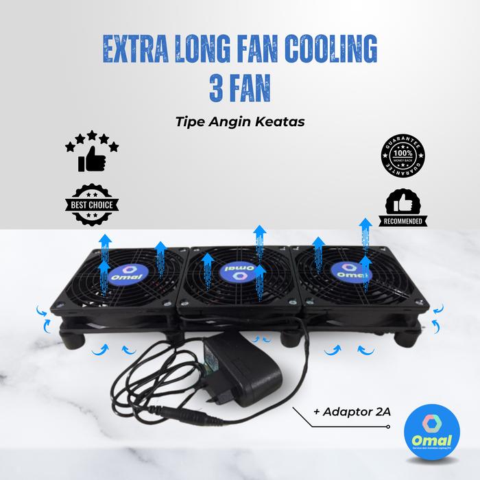 Extra Long Fan Cooling Wifi Router Kipas Pendingin 3 Fan 12v DC Laptop - 24x8cm Tanpa Adaptor