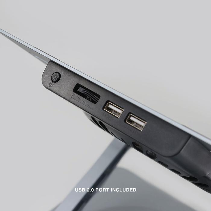 Rexus Decha Frost FP04: Stand Laptop RGB Alumunium Portabel Kipas Kuat Rotasi 360° Desain Stylish dan Ergonomis - Grey