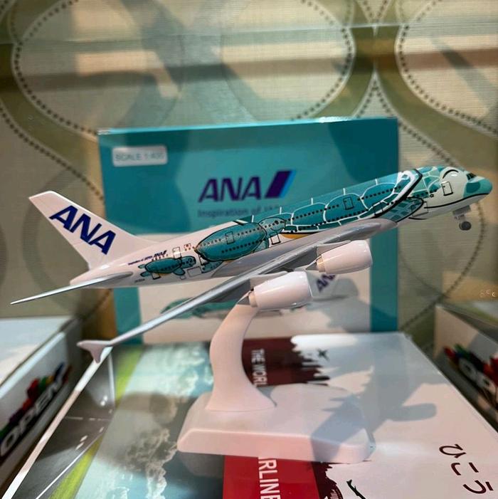 miniatur pesawat ANA Hijau kura kura a380 800 panjang 20 cm ada roda ada dudukan