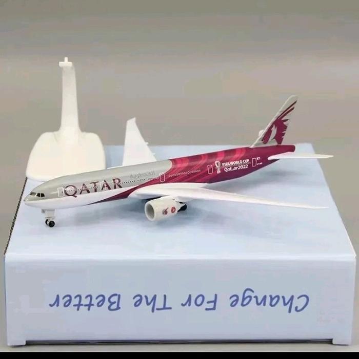 miniatur Diecast pesawat Qatar piala dunia Boeing 787 20 cm ada roda ada dudukan