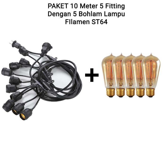 Paket Kabel Fitting Lampu Gantung Outdoor Waterproof Led Bohlam Pijar Filament Filamen Vintage Retro Edison Kaca Teh / B