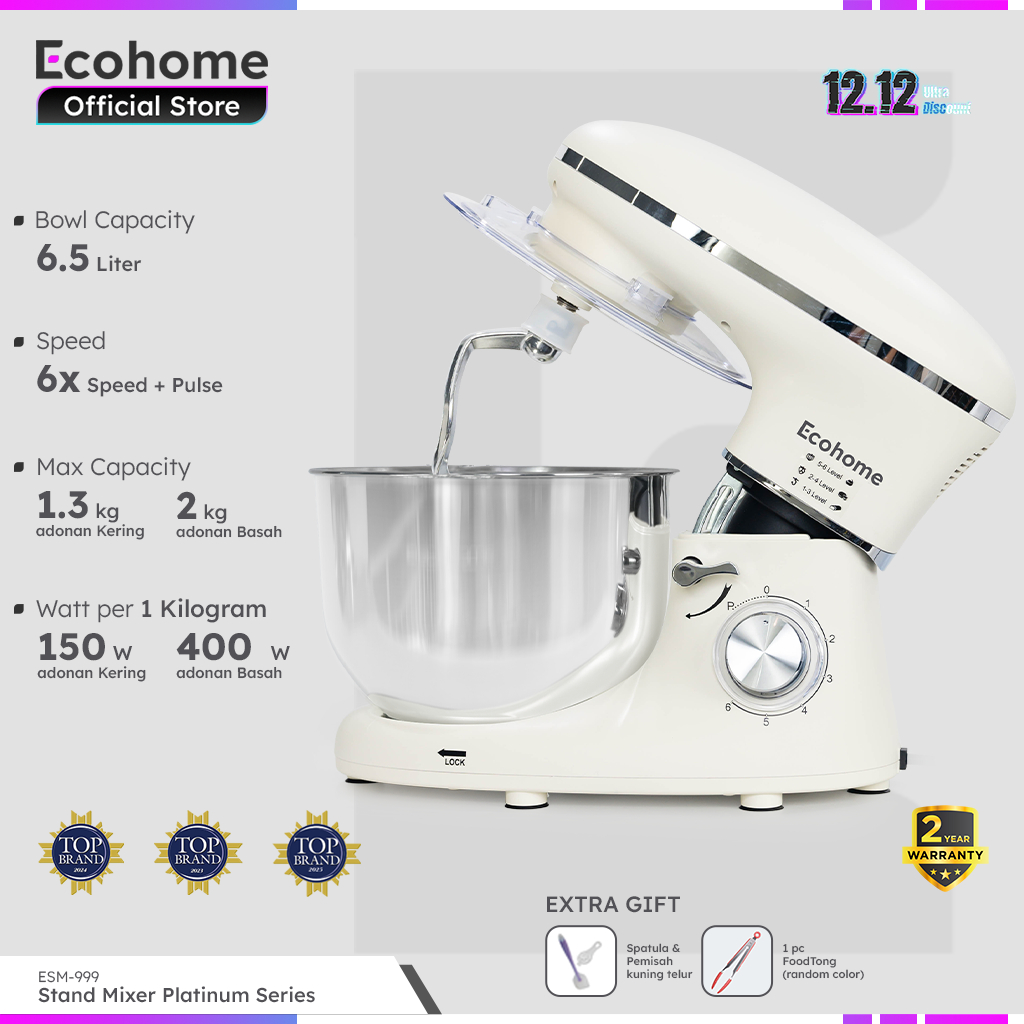 ECOHOME Stand Mixer Platinum Series ESM999 Premium Stand Mixer Heavy Duty 6.5L Capacity