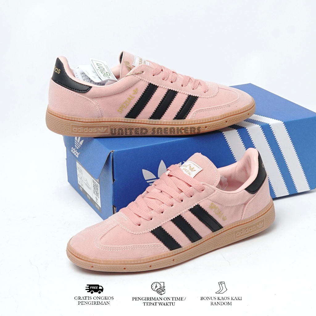 Sepatu Sneakers Wanita Black Pink Handball Spezial Kasual Santai Skena Bonus Kaos Kaki