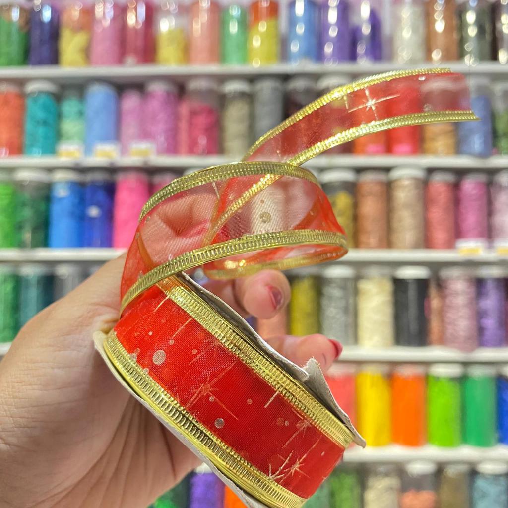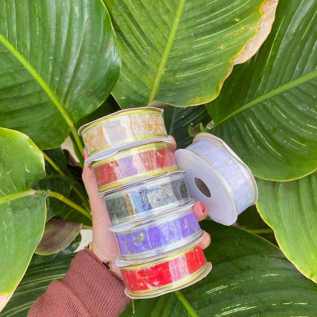 Pita Natal Roll 1 inch Organdi Random Warna Dekorasi Hampers Box Natal / Ornamen Hiasan Gantung
