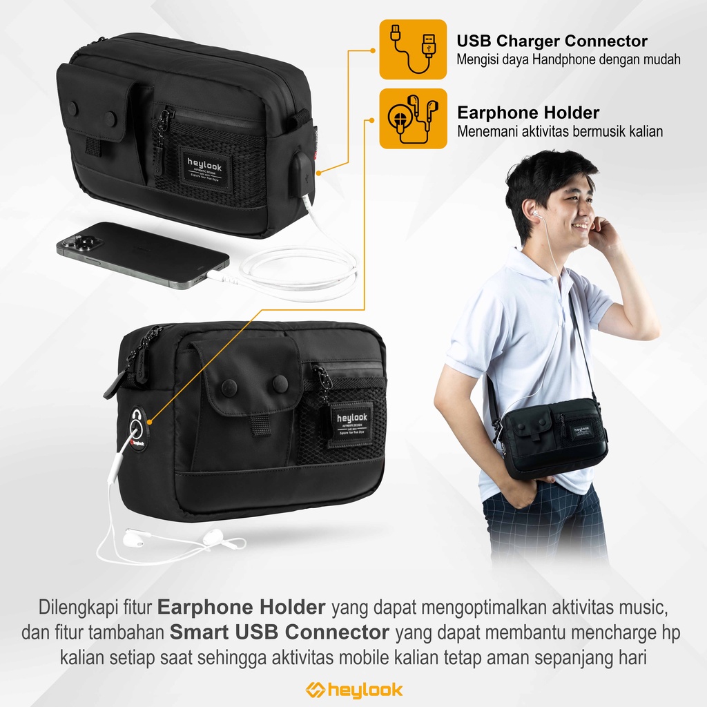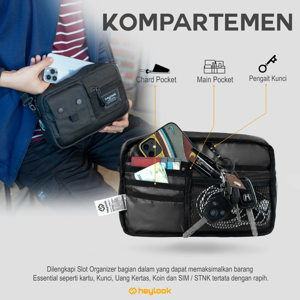 Heylook Official - Sling Bag Axton Multyfungsi 3 In 1 Hand Bag Kulit Anti-Air Tas Selempang Waterproof Clutch Bag Pria W