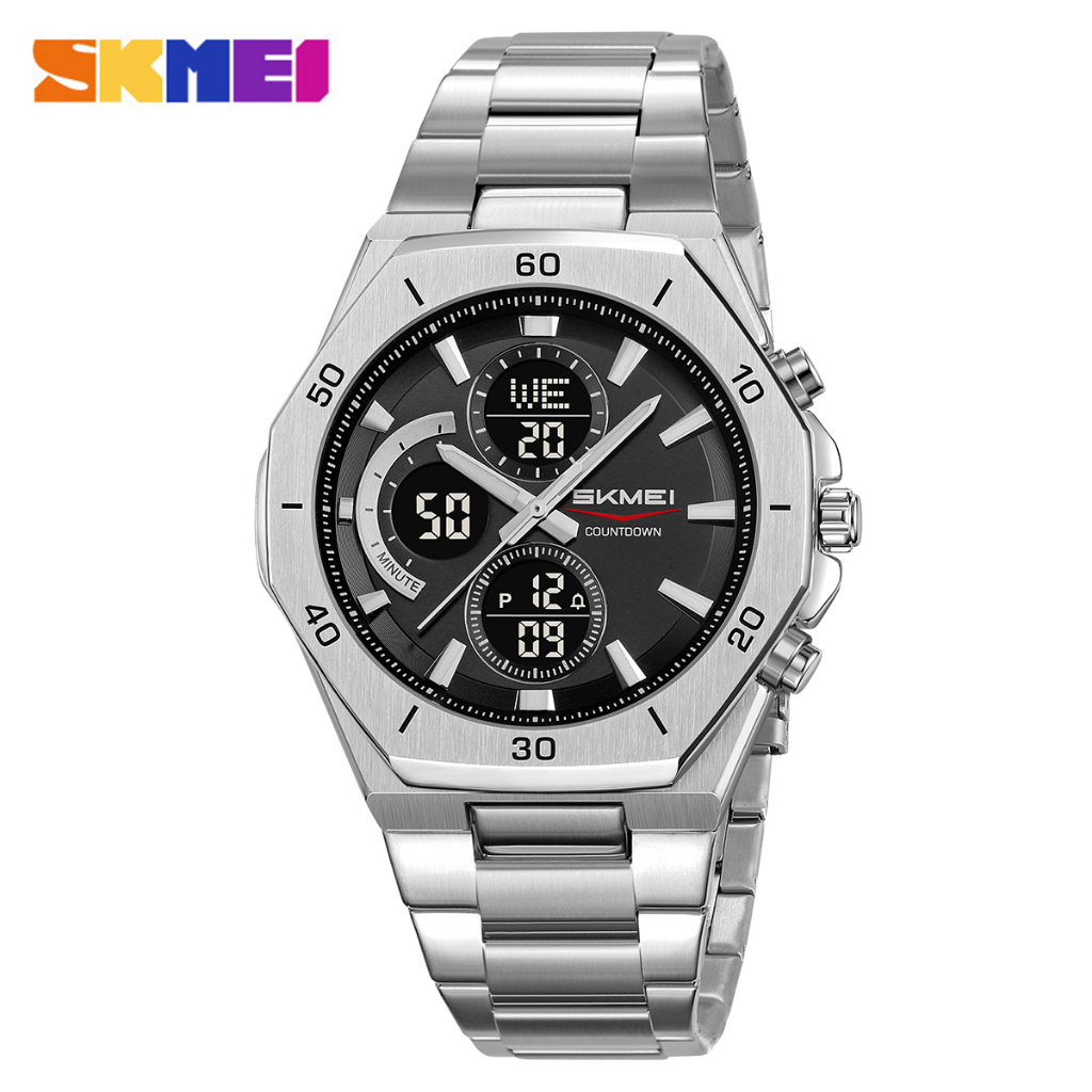Skmei 2561 Jam Tangan Pria Digital Analog Tali Stainless Rantai Tahan Air Mgos