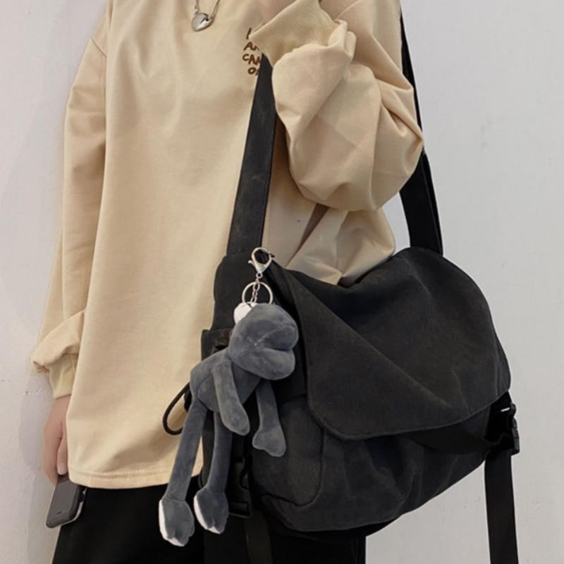 Slingbag Cowok Mahasiswa, Tas Kanvas Jepang, Universal, Klasik Minimalis, Santai, Shoulder Bag