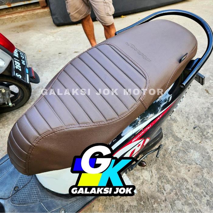 Cover Sarung Pelindung Jok Motor Tinggal Pasang Model Caferacer Anti Air Vario Scoopy Beat Pcx Nmax Aerox Coklat Karet -
