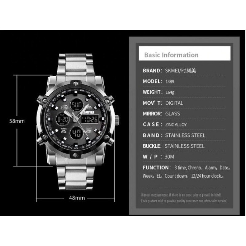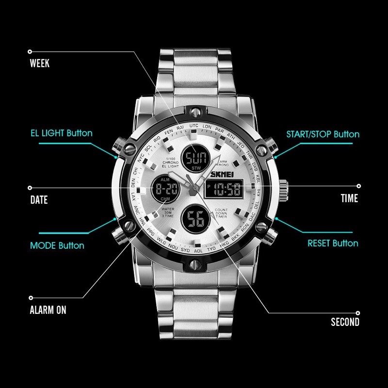 Jam Tangan Pria Digital Analog Skmei 1389 Silver White Water Resistant 3 Atm Original