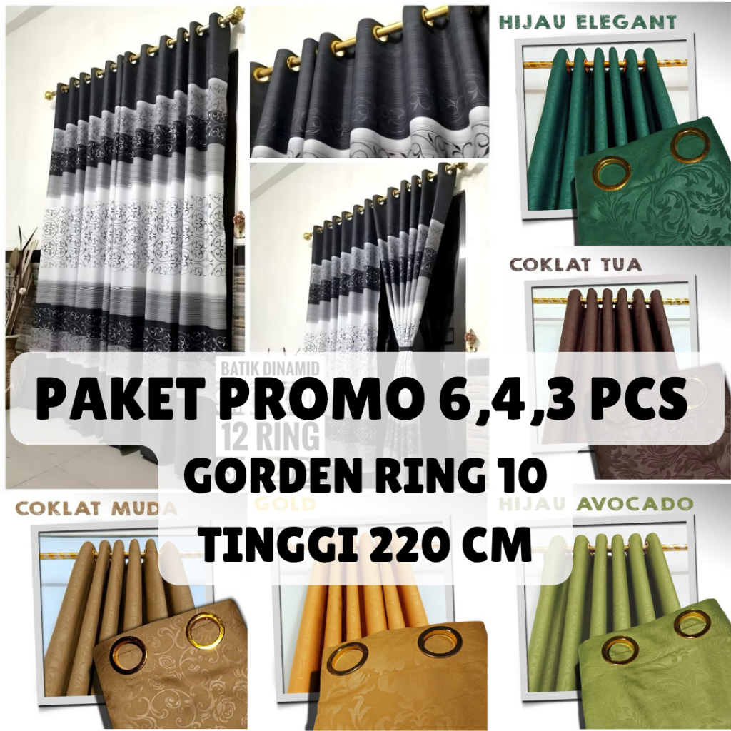 PAKET 6 PCS GORDEN JENDELA DAN PINTU MINIMALIS AESTHETIC SMOKRING 10 LUBANG
