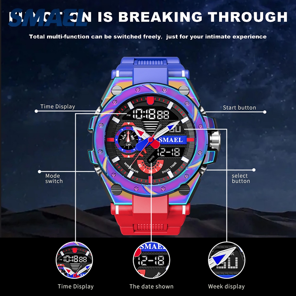 Smael 8060 Original Jam Tangan Sport Pria Multifungsi, Tali Silikon, Tahan Air, Bercahaya