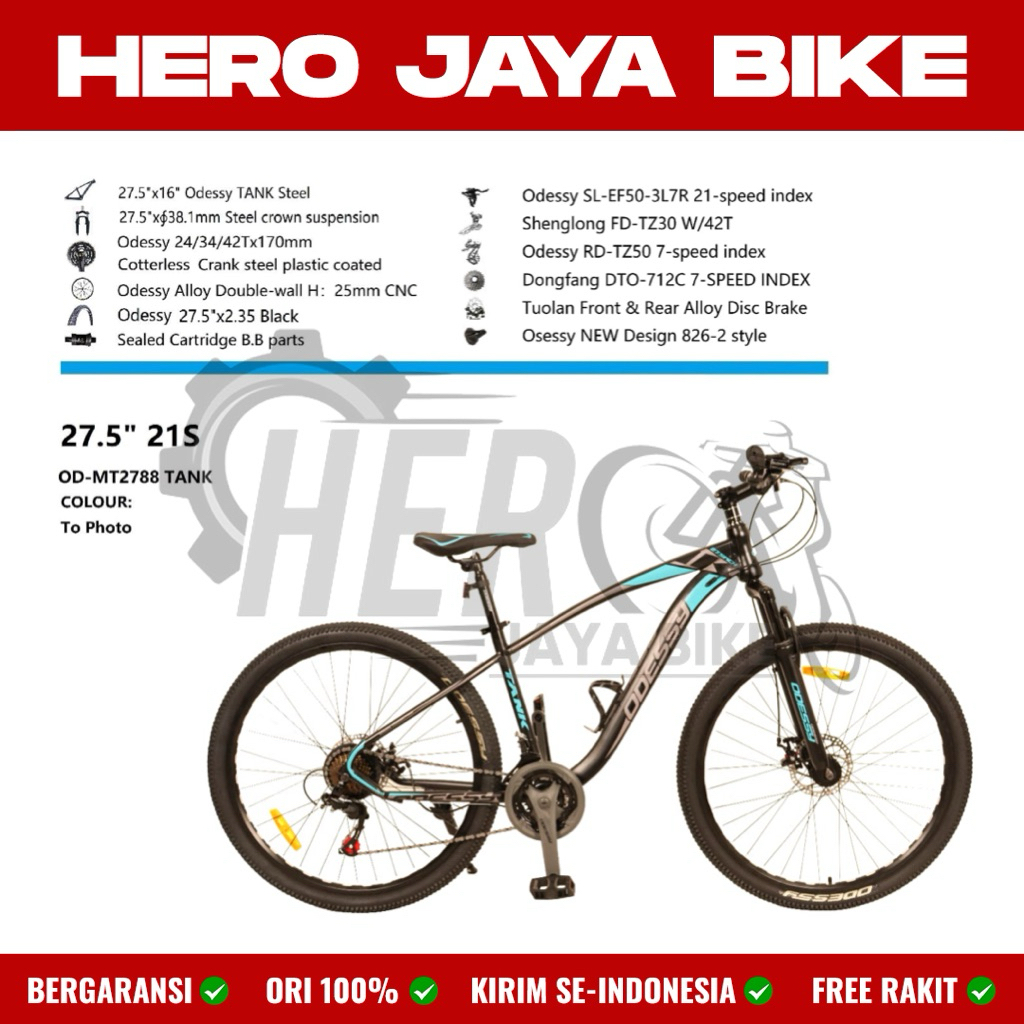 Sepeda Gunung MTB ODESSY TANK MT 2788 Uk 24 26 & 27,5Inch 21Speed REM CAKRAM BERGARANSI