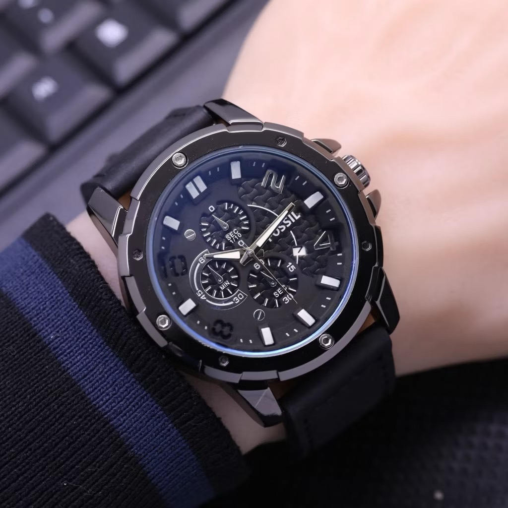 Jam Tangan Pria F972L Tanggal Aktif Tali Kulit Free Box Ori & Batrai ( )
