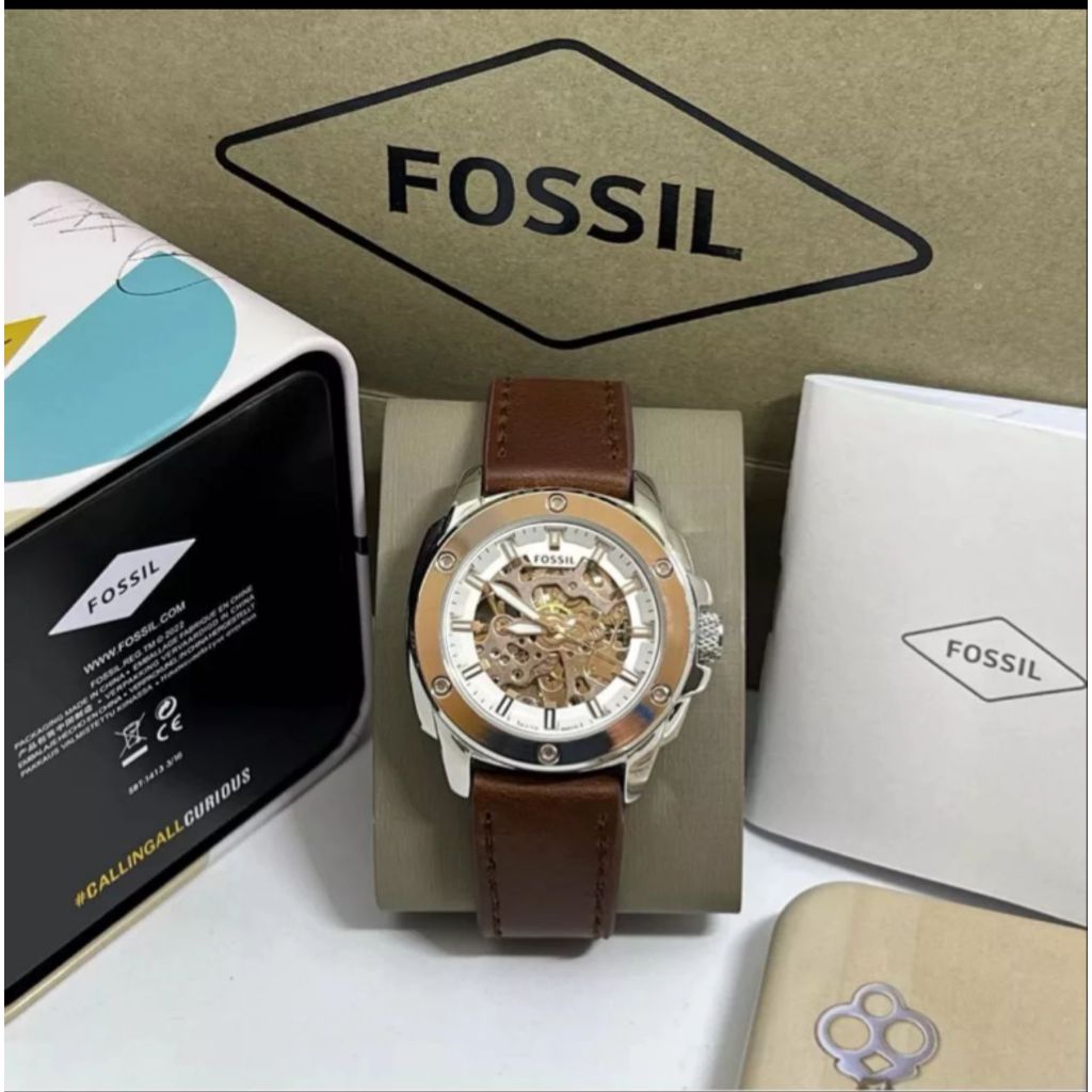 Jam Tangan Pria Fosol Automatic Tali Kulit Body Bulat Knop Gerigi Box Exclusive