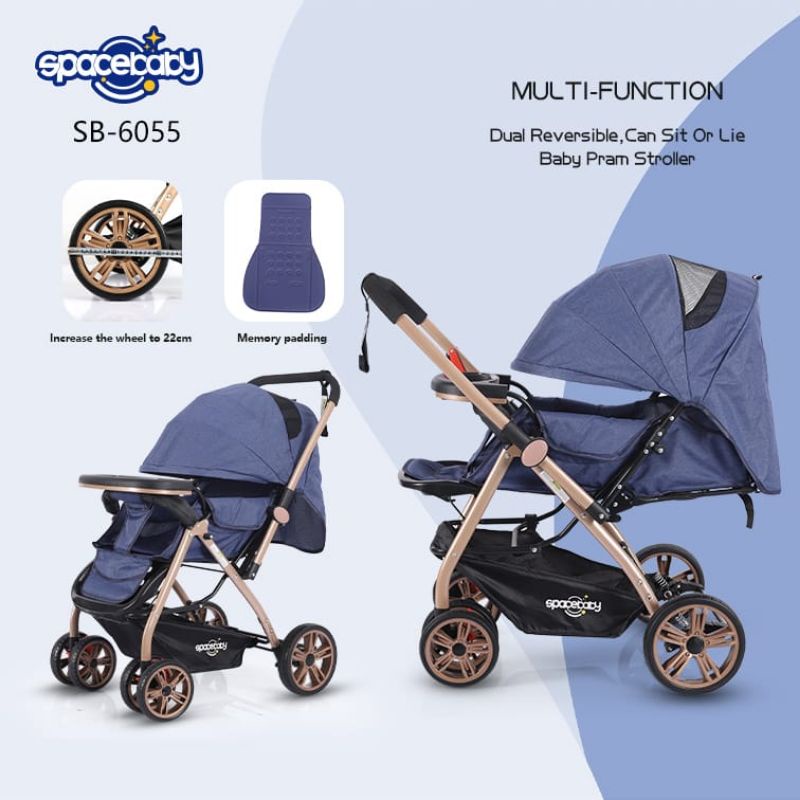 BABY STROLLER SB-6055 (REVERSIBLE STIR) SPACEBABY (size XL, roda BESAR, stir dua arah) // SB-6055A // SB-6033 // SB-6033