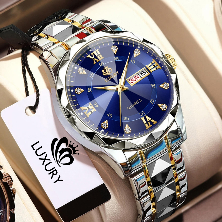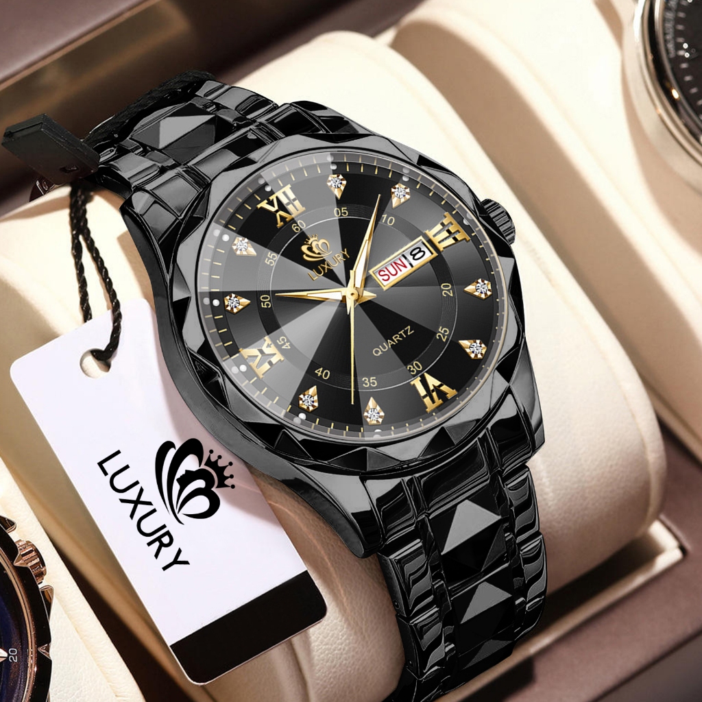 Jam Tangan Pria Luxury Anti Air Original Anti Karat Bercahaya Kalender Quartz Watch Men