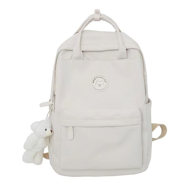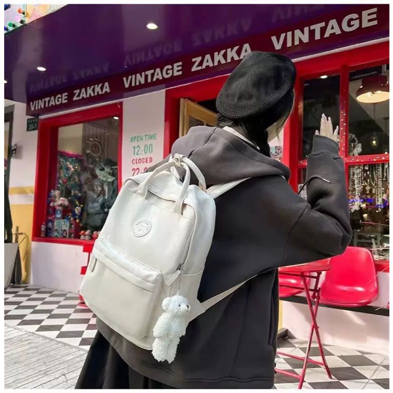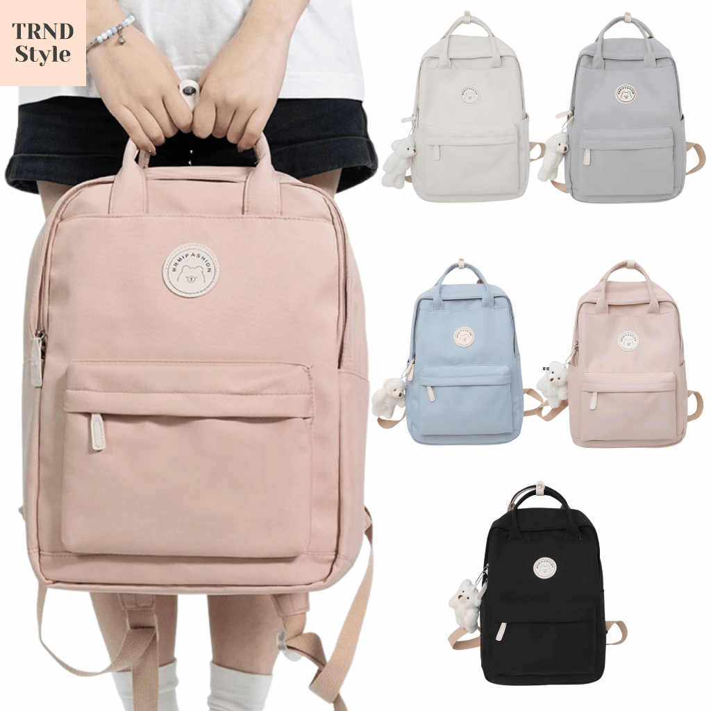 Tas Ransel Sekolah Wanita Warna Solid Tas Bahu Nilon Fashion Korean Style Schoolbag Bp013 Bery
