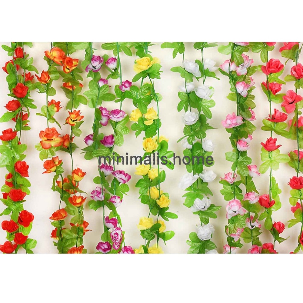 Bunga Rambat Palsu Bunga Juntai Plastik Daun Imitasi Mawar Rose Artificial Dekorasi Dinding Hijang