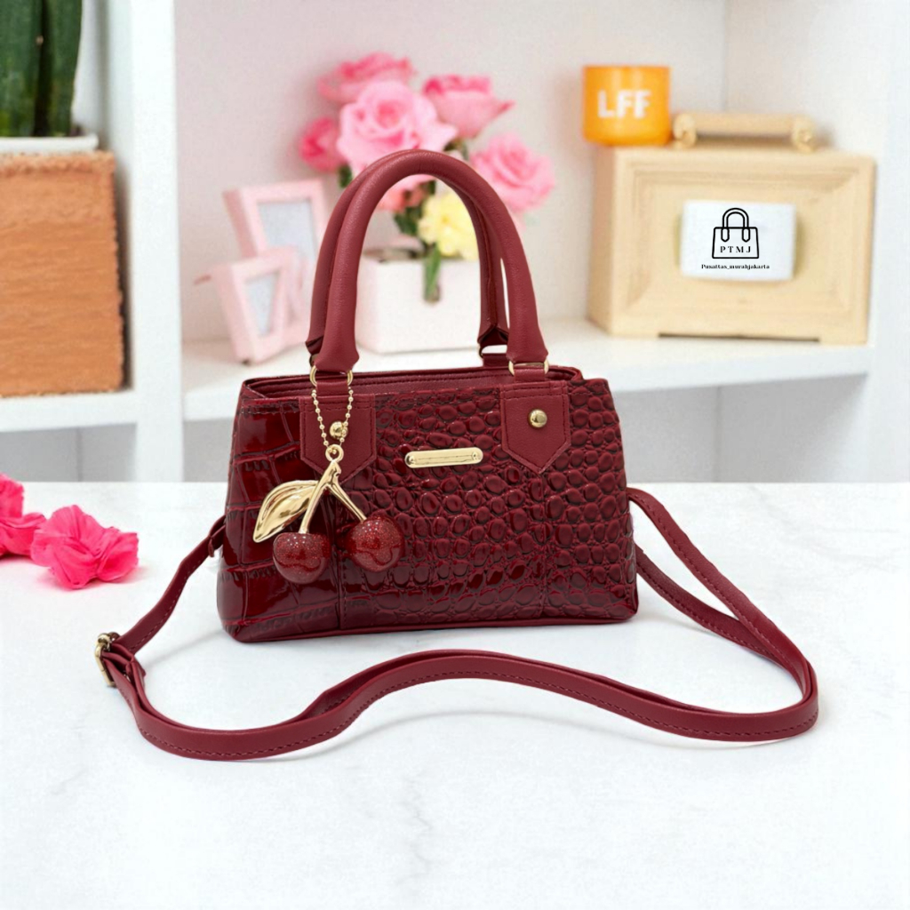 Tas Tangan Wanita Croco Glossy Terbaru 2 Ruang Ptmj