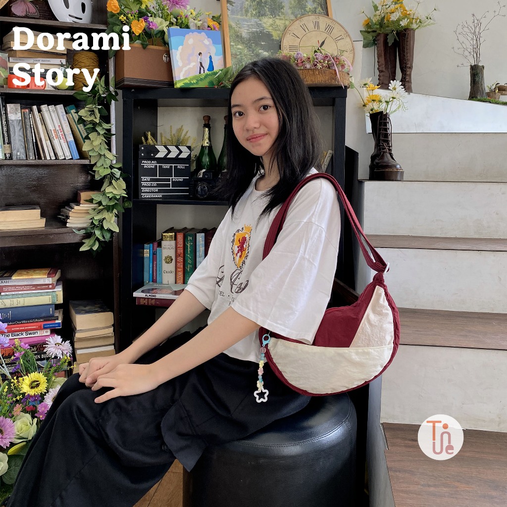Toune Dorami Slingbag Tas Selempang Nilon Tas Wanita Tahan Air Halfmoon Bag