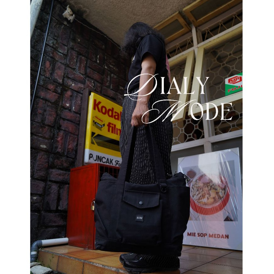 Tote Bag Kanvas Hitam Wanita Pria Unisex – Tas Jinjing Besar Multifungsi Stoa - Zavala Totebag