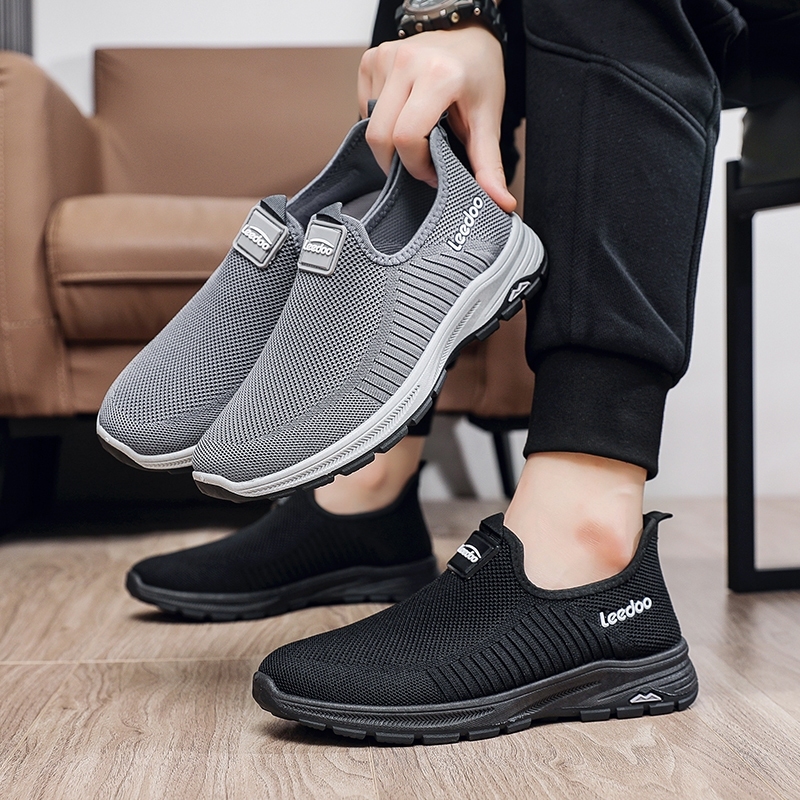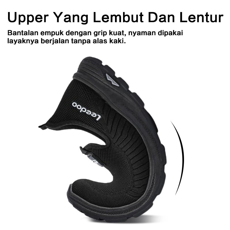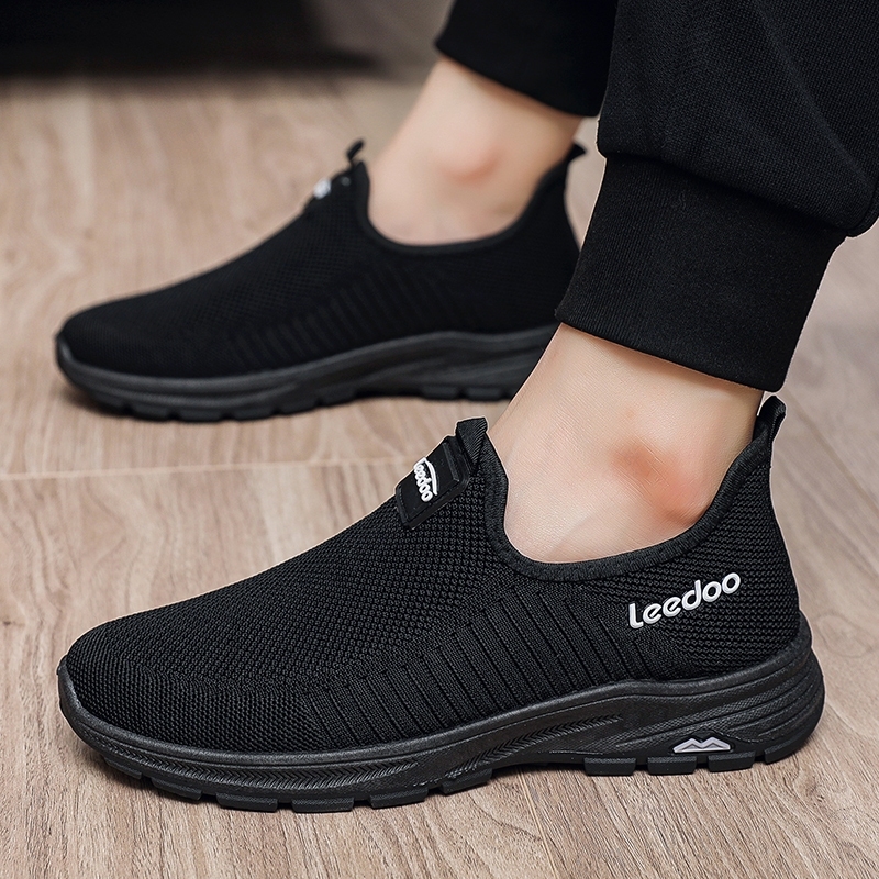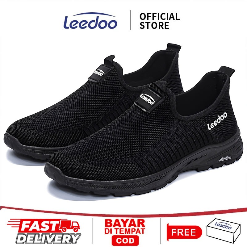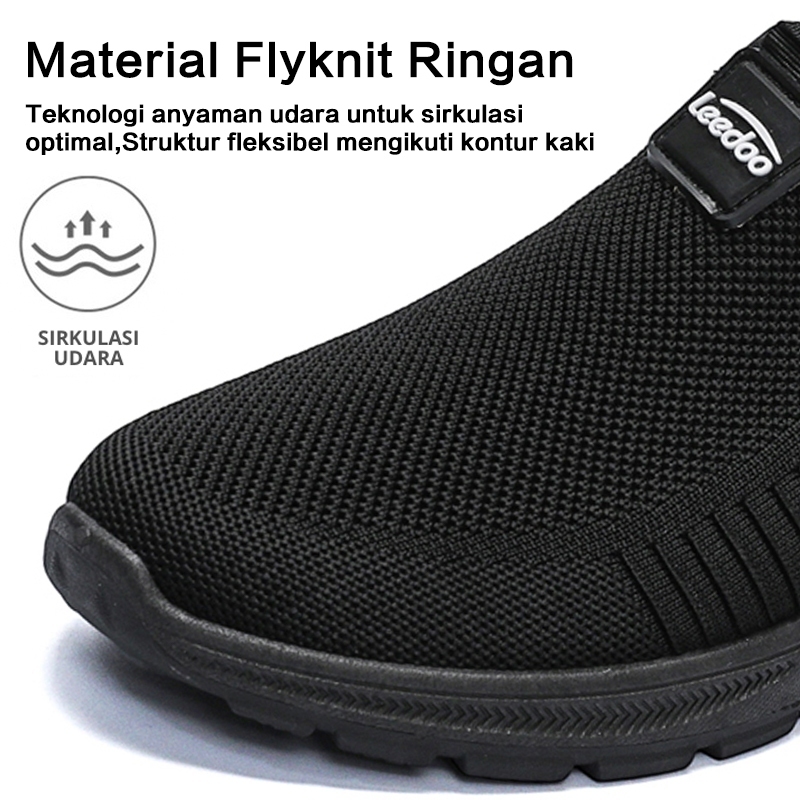 PROMO Leedoo Sepatu Pria Sneakers Slip On Casual Sport Running Shoes Hitam Polos MR198