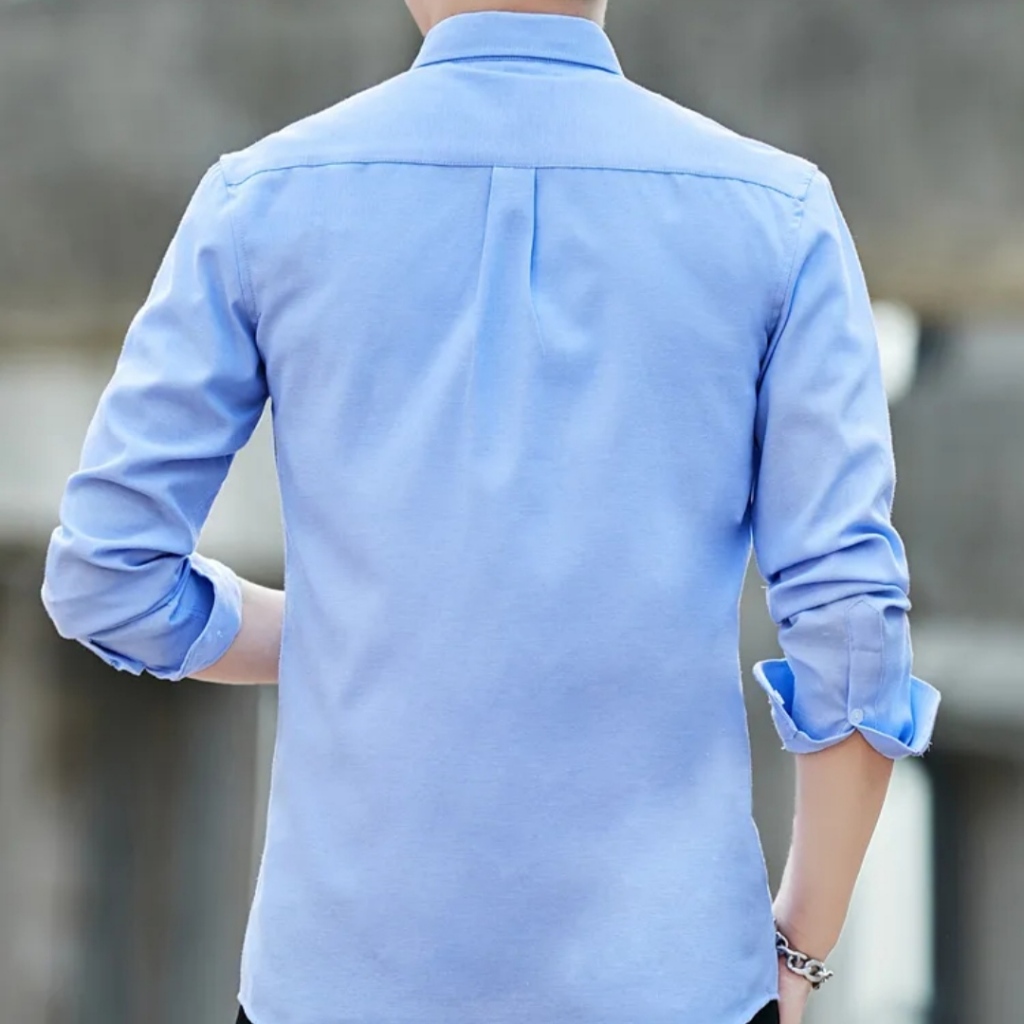 Baju Kemeja Pria Lengan Panjang Polos Sky Blue Hem Biru Langit Bahan Katun Premium