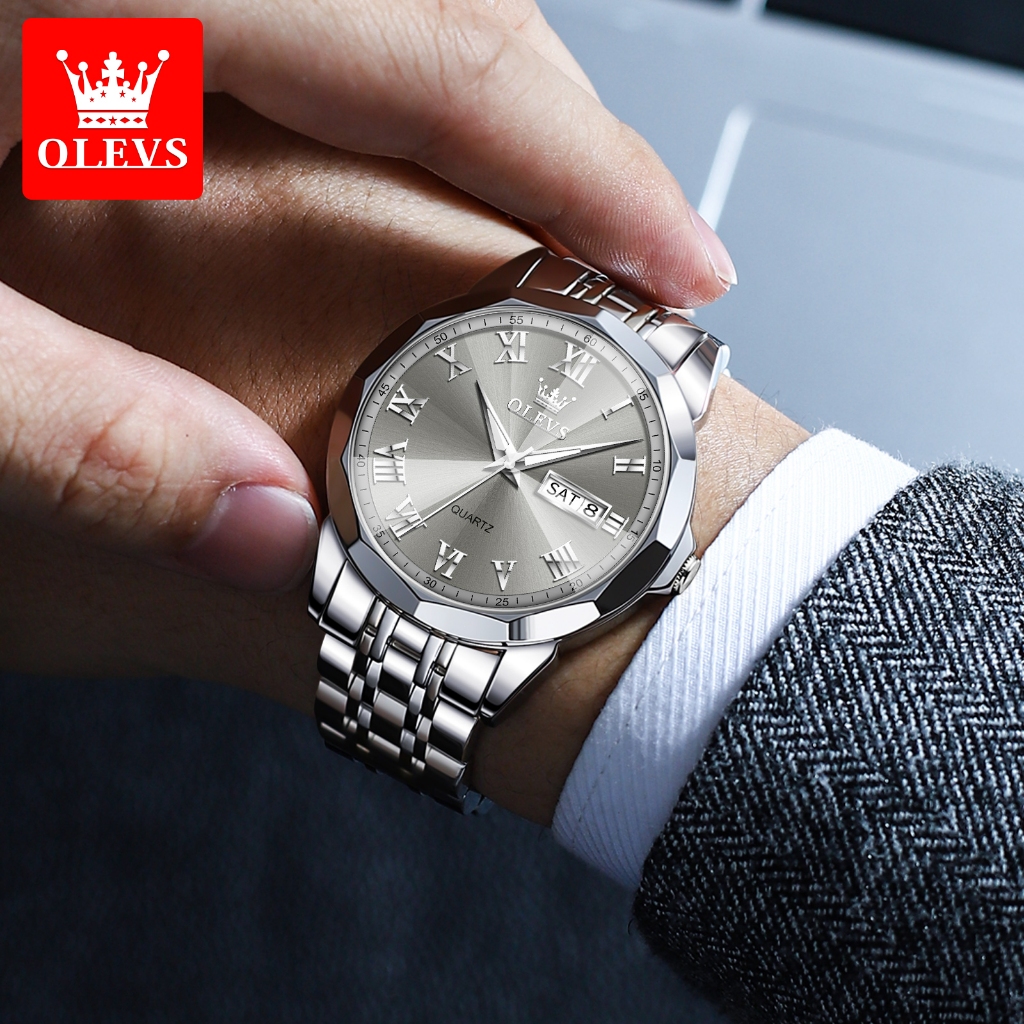 Olevs Jam Tangan Pria Anti Air Original Analog Stainless Steel Keren Casual Jam Tangan Rantai Pria Men Watches 9990