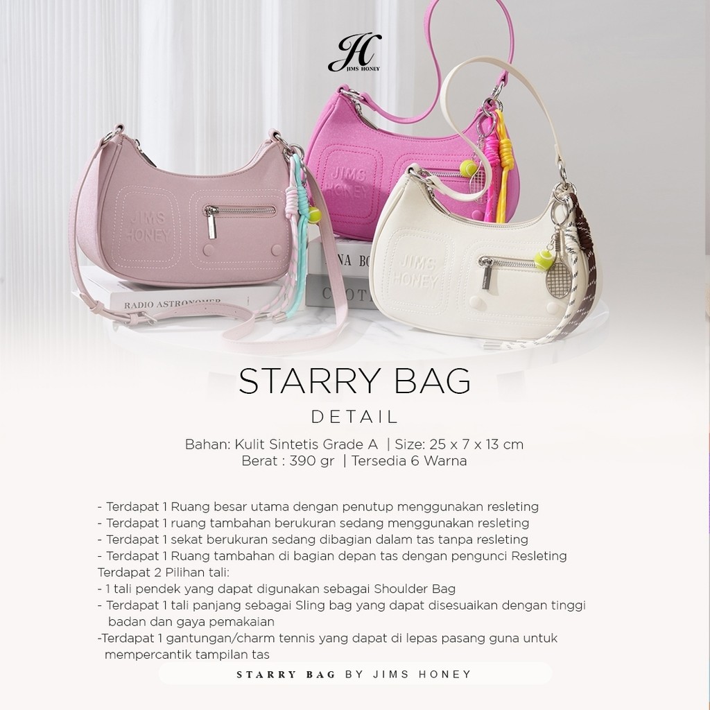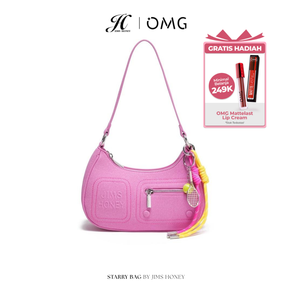 JIMS HONEY - Starry Bag - Tas Selempang Wanita Free Gantungan Tenis YK Cute Bahu Korea Denim Pink
