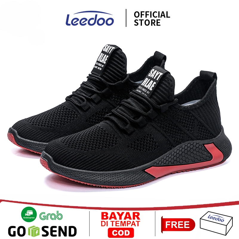 PROMO Leedoo Sepatu Tali Fashion Kasual Sneakers Running Sport Sepatu Sneakers Pria Hitam MR126
