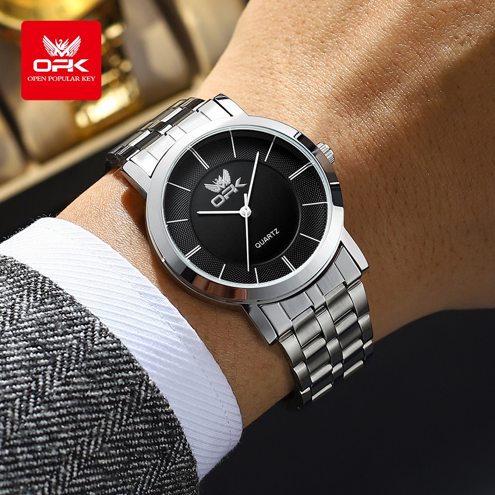 Opk Jam Tangan Pria Anti Air Original Stainless Steel Terbaru 2025 Hitam Putih Men Watch 6019